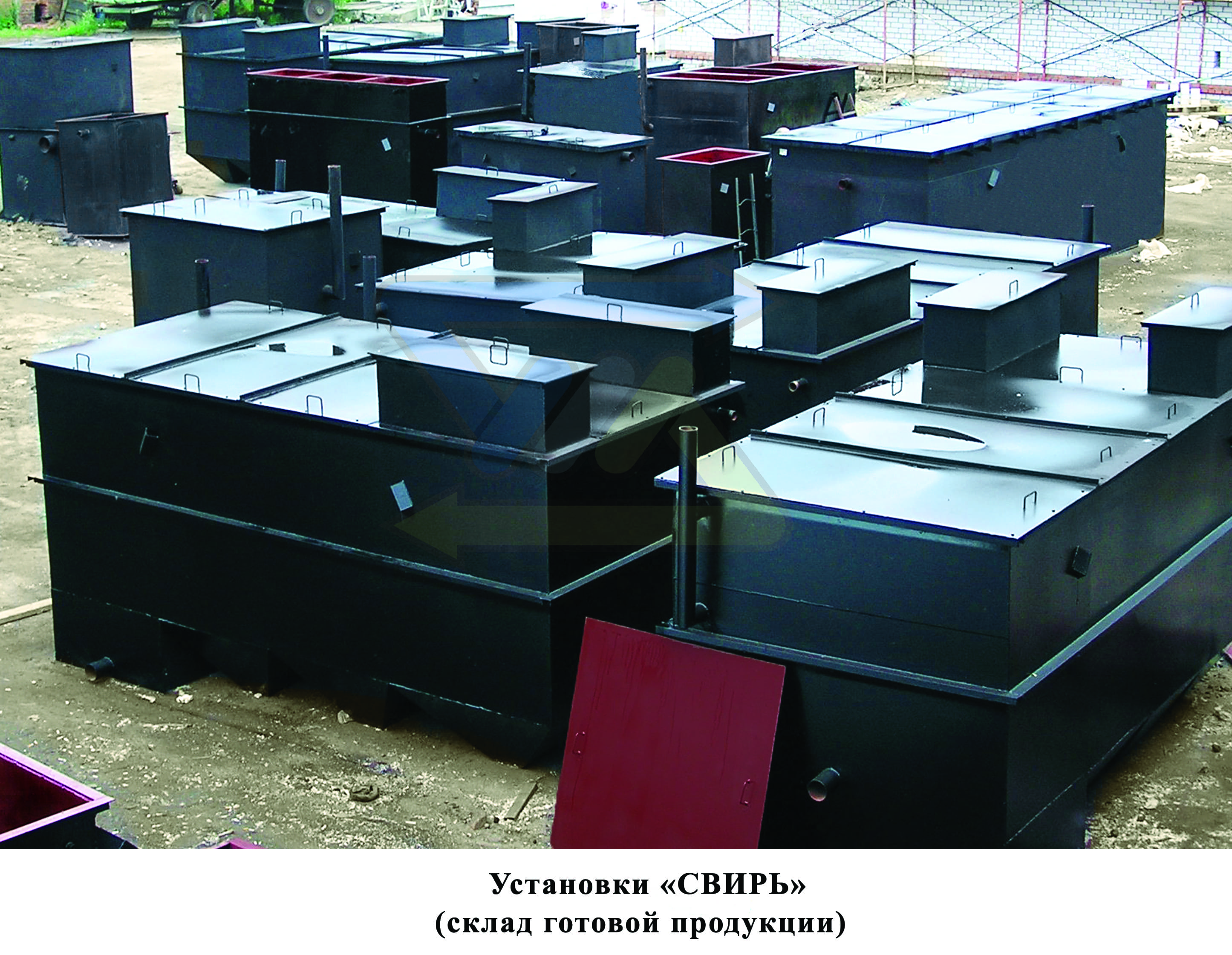 Установка «СВИРЬ-10Н» с принудительным отводом и производительностью 10 л/сек. предназначена для очистки поверхностных сточных вод (дождевых и талых) на территориях автозаправочных станций, автостоянок, складов горюче-смазочных материалов, нефтебаз, промышленных зон и жилых районов с примерной площадью водосбора до 1 га. Насосный отсек обеспечивает напорный вывод очищенной сточной воды.